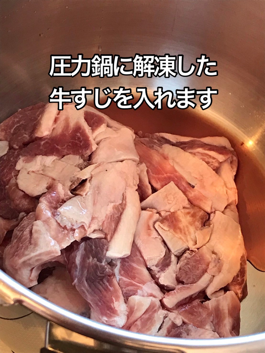 | ・マヨネーズ 適量 【牛すじの下拵え方法】添付画像をご確認ください。★圧力鍋編★ ![]() ![]() ![]() ![]() ![]() ![]() ☆☆牛すじ下拵え完了です☆☆👉鍋を使ってじっくりと下ごしらえの場合は下記のURLをご確認ください。➡https://wagyukiwami.thebase.in/blog/2021/08/12/120424