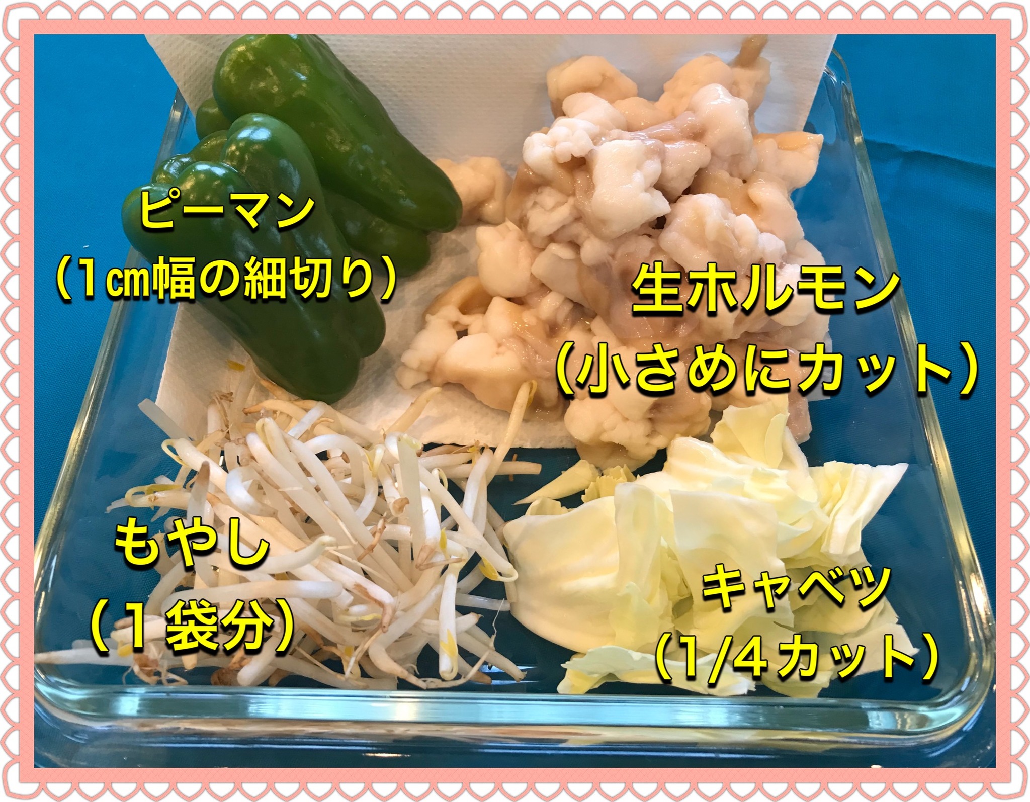 4 フライパンにごま油をひき、中火で生ホルモンを炒めます。