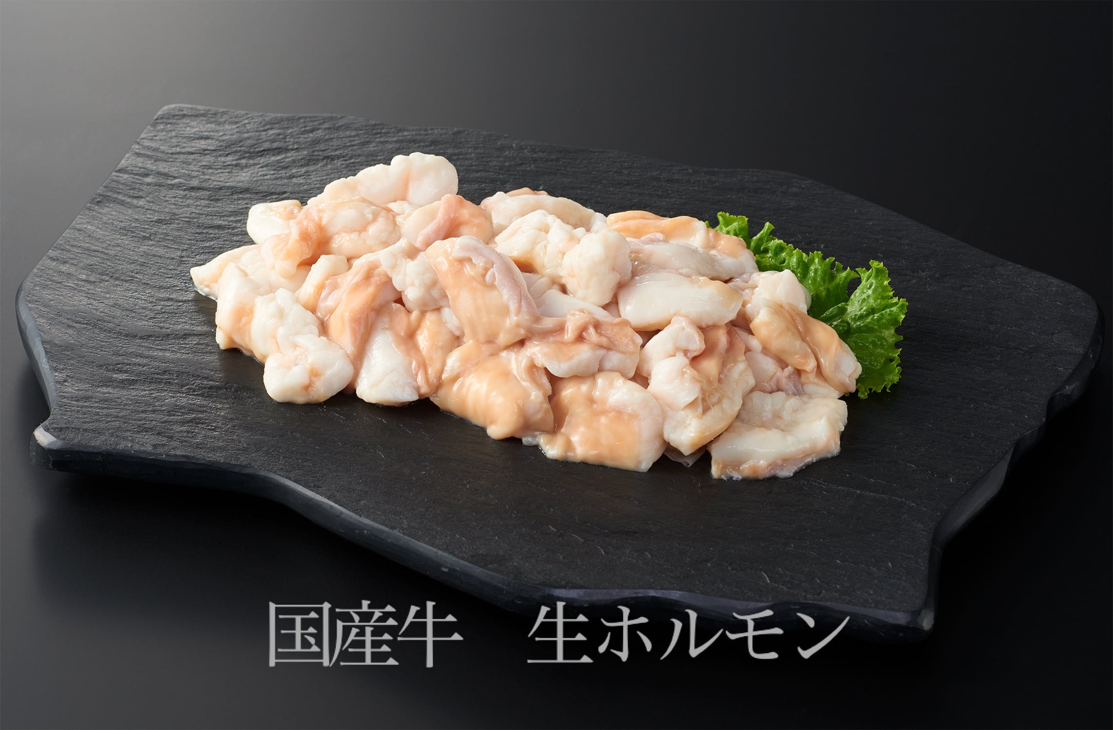 当店自慢の生ホルモン(小腸)は、牛独特の臭みも無く、甘みのある脂ですので、とても調理しやすい食材となっております。